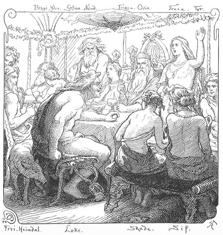 스카디가 분노하여 창을 들자 다른 신들이 말렸다.